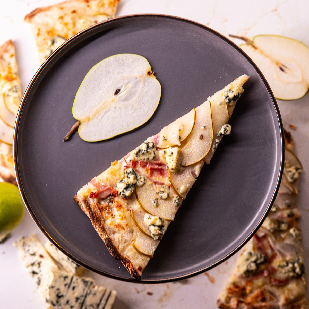 Sosul alb cremos și mozzarella proaspătă deschid drumul către o experiență gustativă unică. Baconul afumat adaugă un element surprinzător de crocant și aromă. Fiecare felie de pară aduce o notă ușor dulce, contrabalansând perfect savorile intense ale ingredientelor din jur pentru ca, la final, Gorgonzola, cu a sa textură cremoasă și arome complexe, să încoroneze această pizza gourmet cu totul specială.